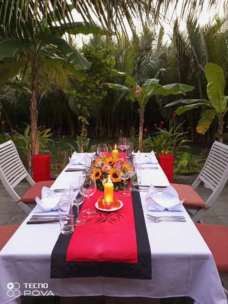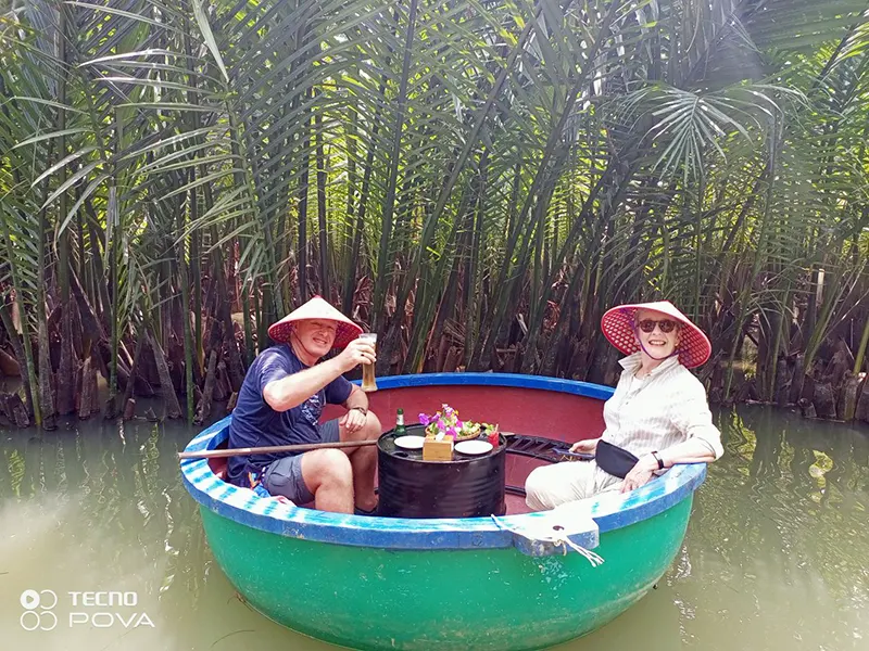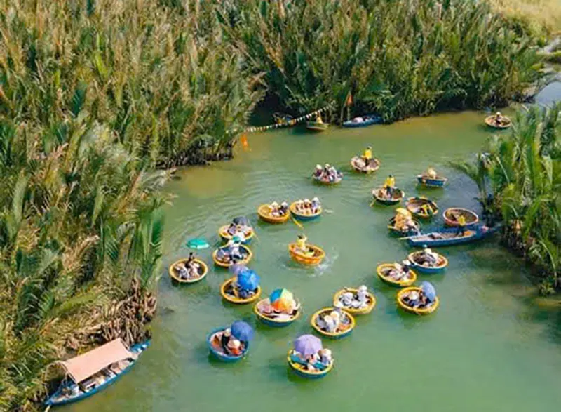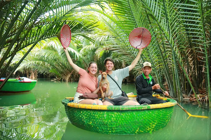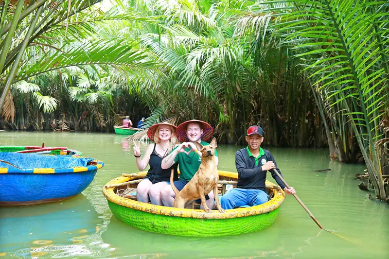 While you are in Hoi An, Da Nang, don’t miss the chance to discover the Coconut Palm Forest & the Basket Boat Café. Just outside Hoi An, the Coconut Palm Forest offers a peaceful escape with lush greenery and winding waterways. Explore this unique ecosystem by gliding through the river on a basket boat and witnessing traditional fishing techniques. Hidden within this beautiful setting, the Basket Boat Café & Restaurant is the perfect spot to relax. Enjoy rich Vietnamese coffee, tropical cocktails, and savor freshly made local and Western dishes while taking in the serene riverside views.